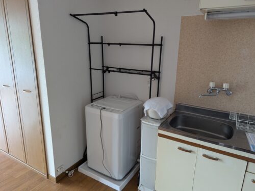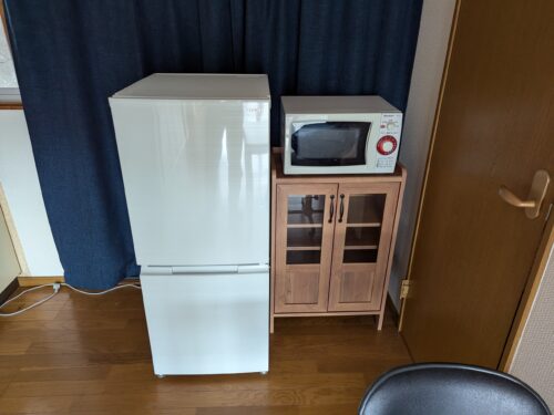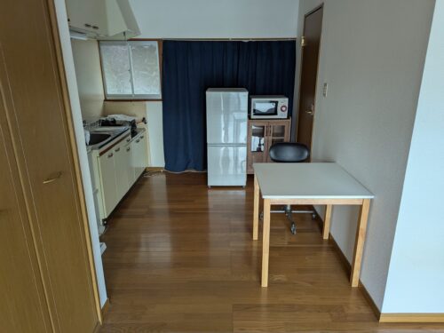 設備・条件 | 単身者限定 ペット不可 角部屋 二口コンロ 給湯 独立洗面台 バス専用 シャワー トイレ専用 バス・トイレ別 エアコン 室内洗濯機置き場 CATV CATV利用料無料 プロパンガス 井戸 排水下水 フローリング 備品あり(照明器具・ガスコンロ・冷蔵庫・電子レンジ・洗濯機・炊飯器・テーブル・椅子1脚・食器棚・テレビ・テレビ台・収納棚2つ・カーテン) |