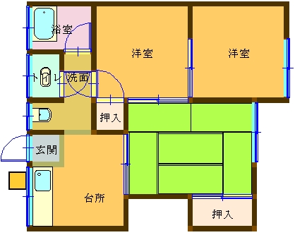 間取内容 洋室4.5畳   洋室4.5畳   和室6畳   K4畳