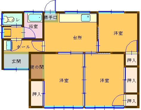 | 間取内容 | 洋室6畳 洋室6畳 洋室4.5畳 DK6畳 | ||